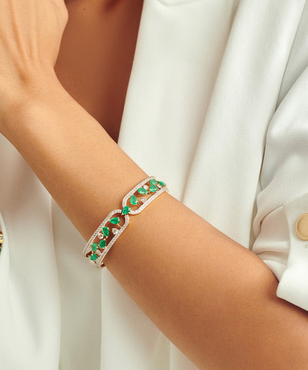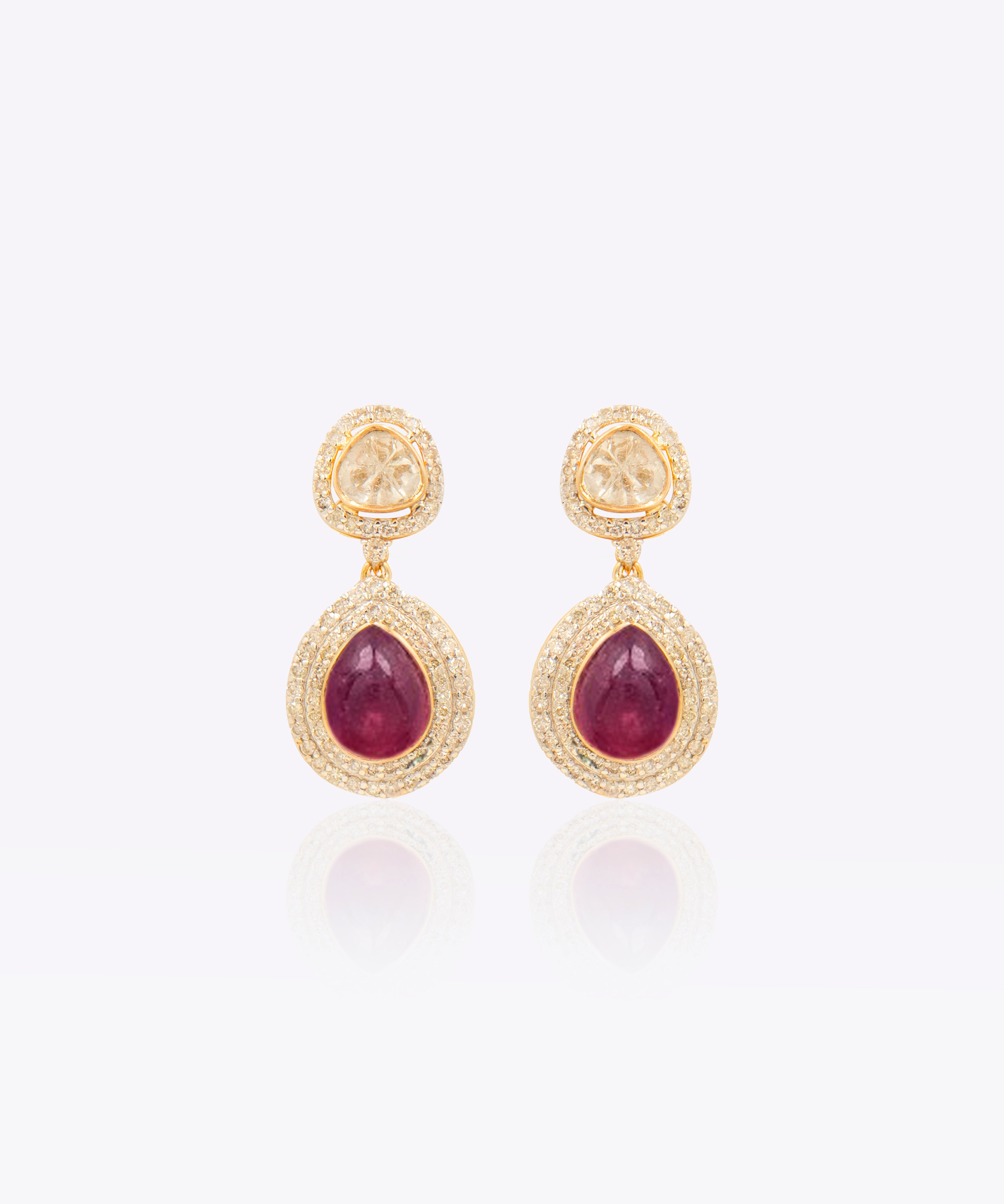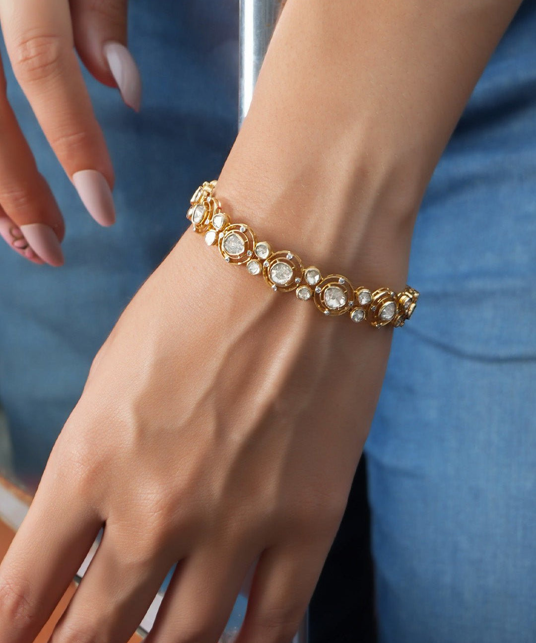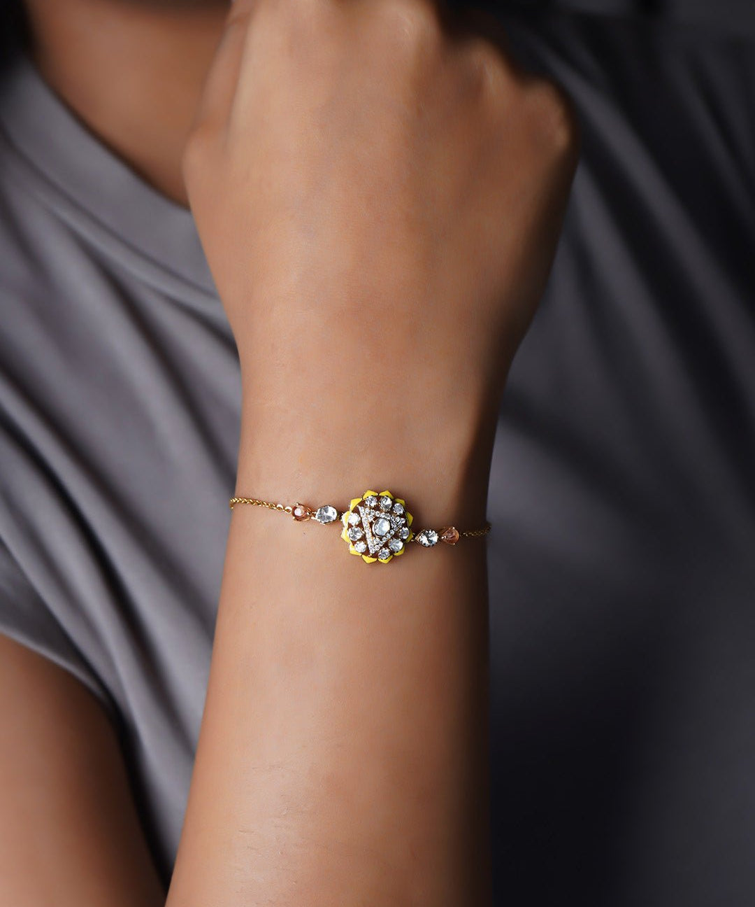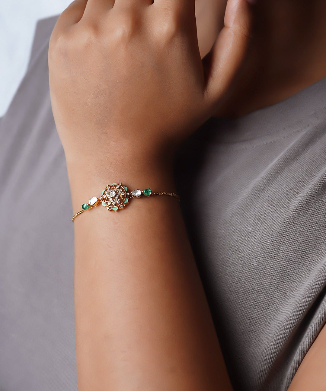 A poetic blend of tradition and modernity, this 18k gold ring features Polki and brilliant-cut diamonds in a sculptural floral silhouette. Blush enamel detailing adds a dreamy, dawn-like glow — a delicate statement of elegance and romance.