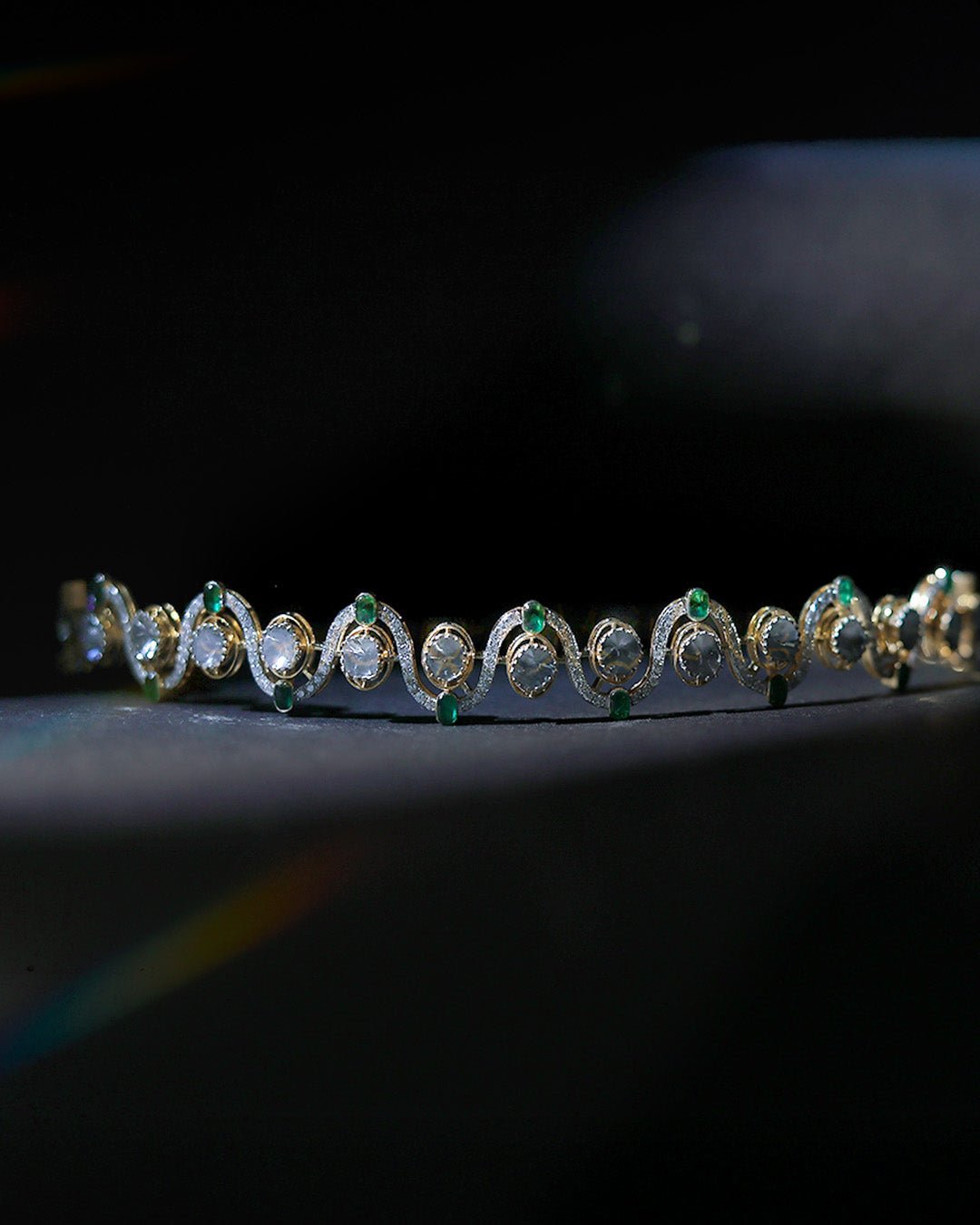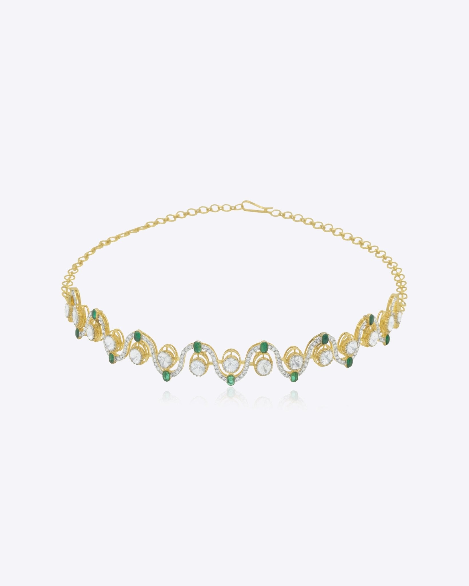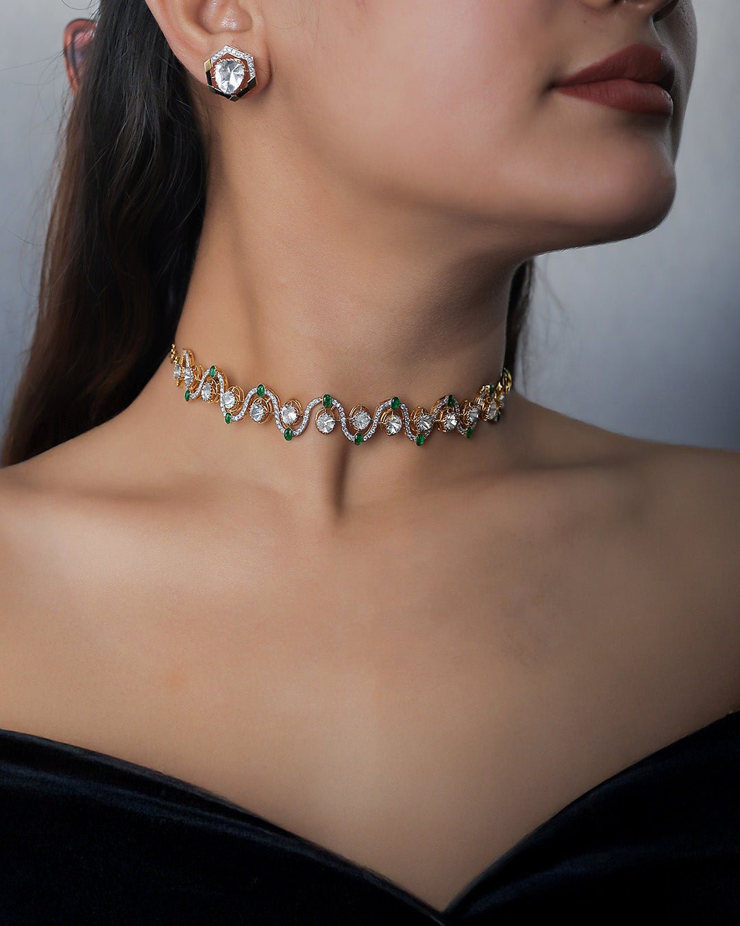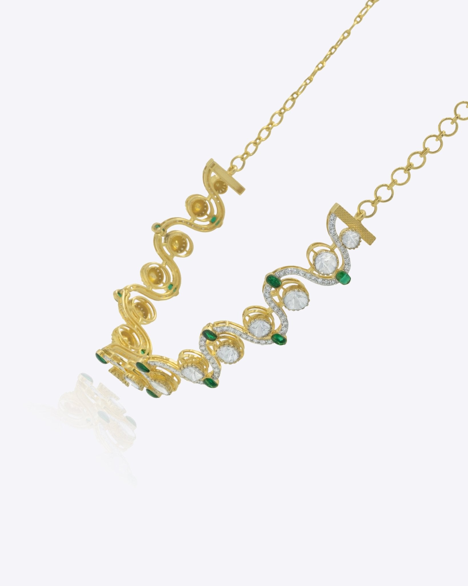 Curvessa Necklace, crafted in 14K gold, features sparkling polki set along graceful zigzag curves for a modern, elegant look.
