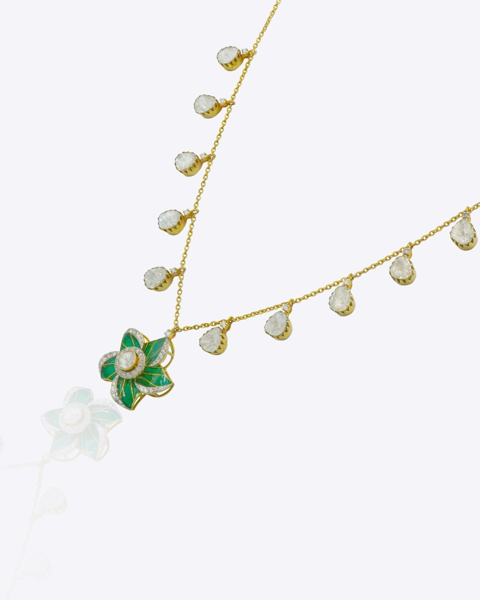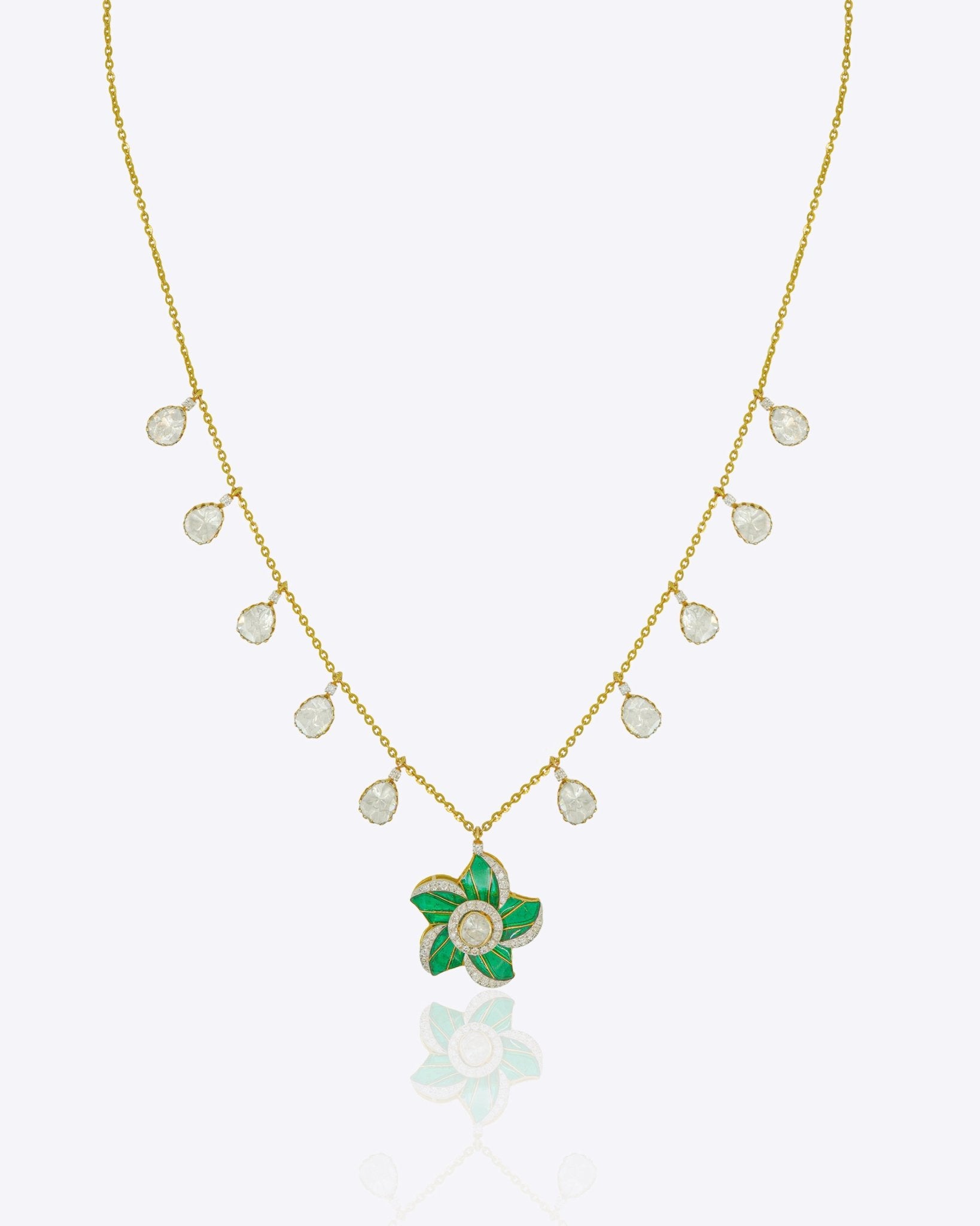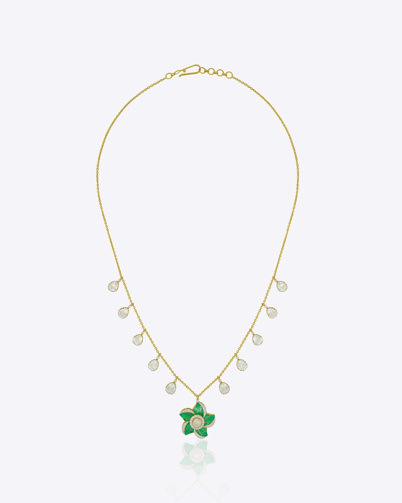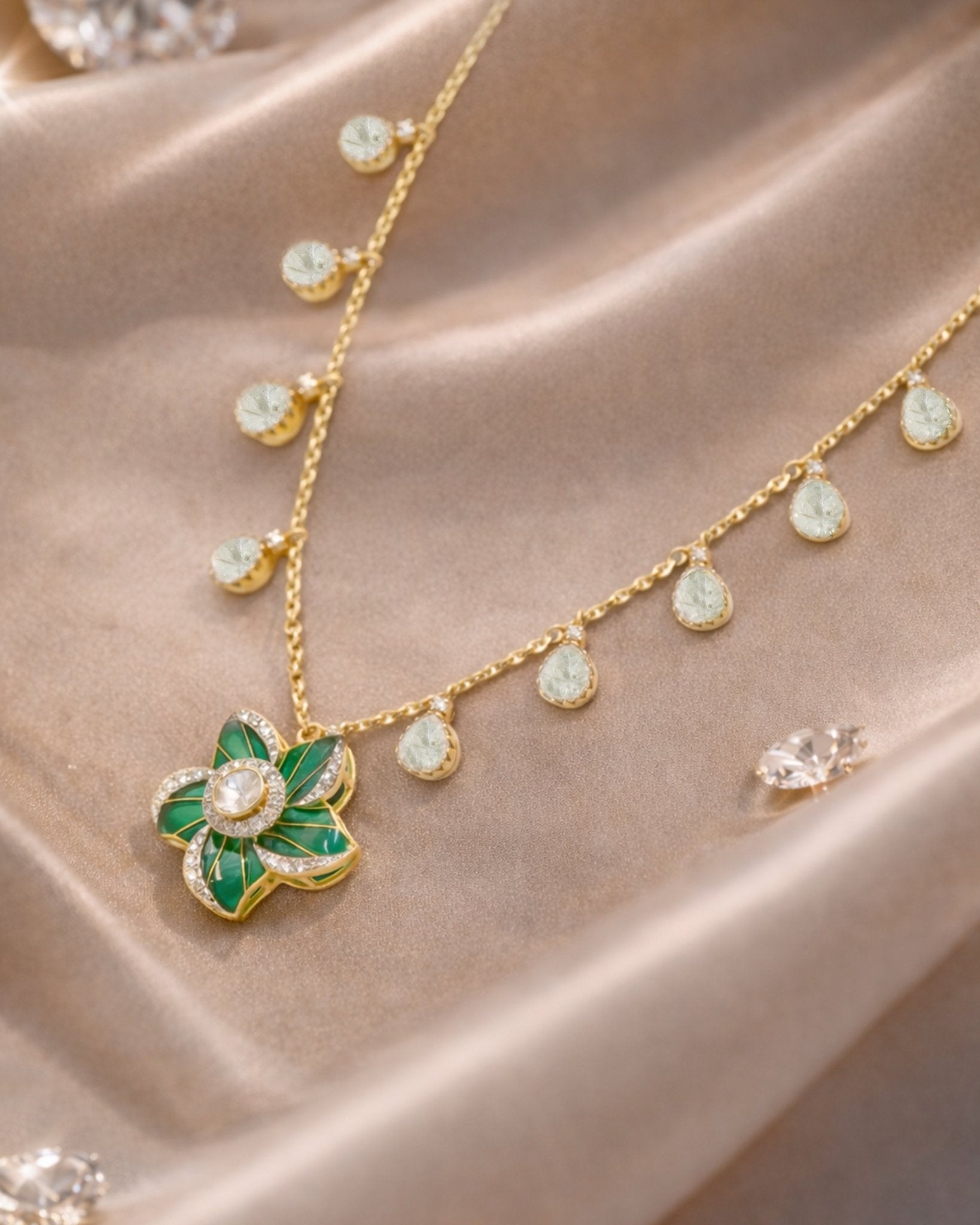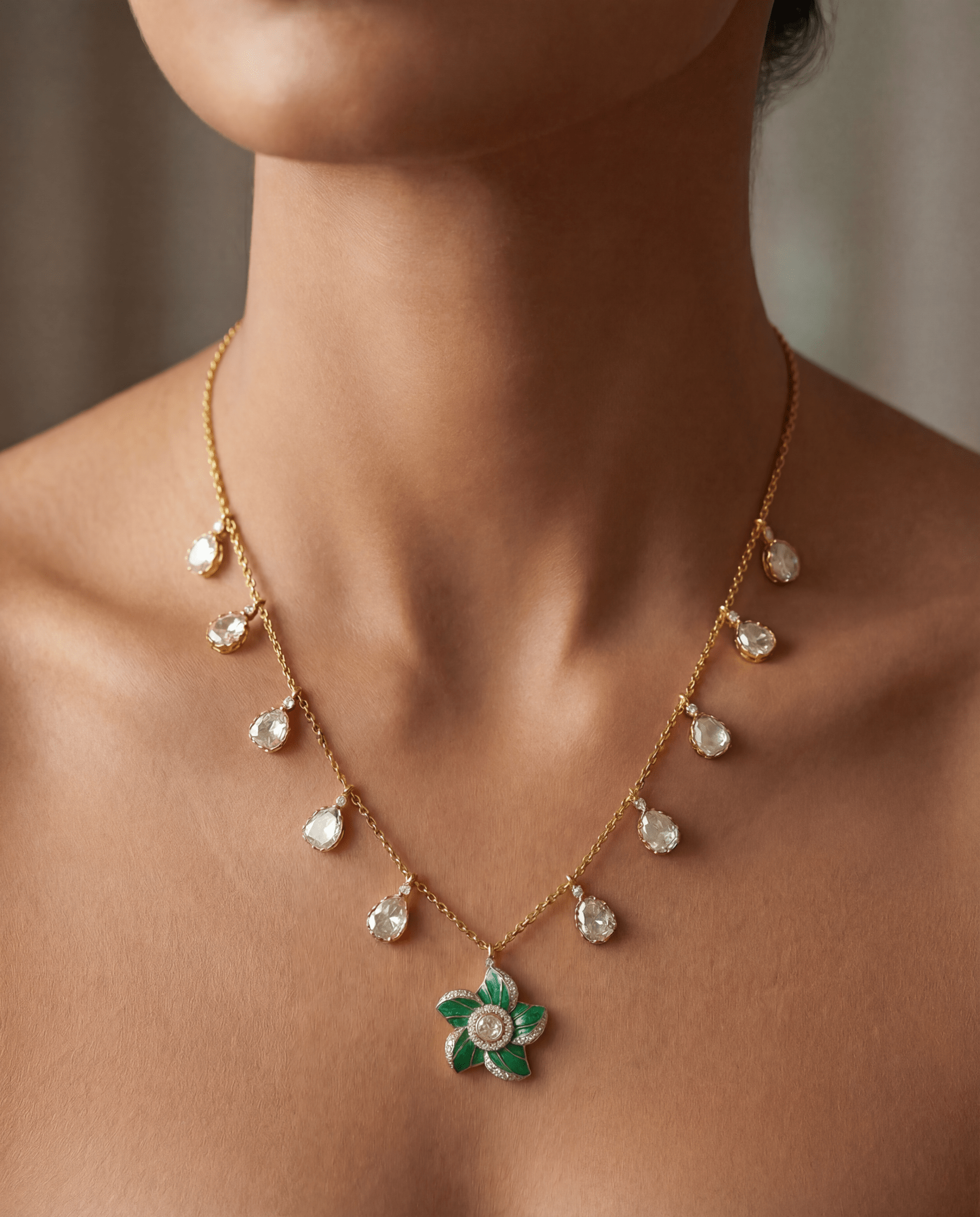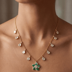 Wear it close to the collarbone with a fine chain stack, or let it sit solo against a sharp neckline for a polished, contemporary finish.