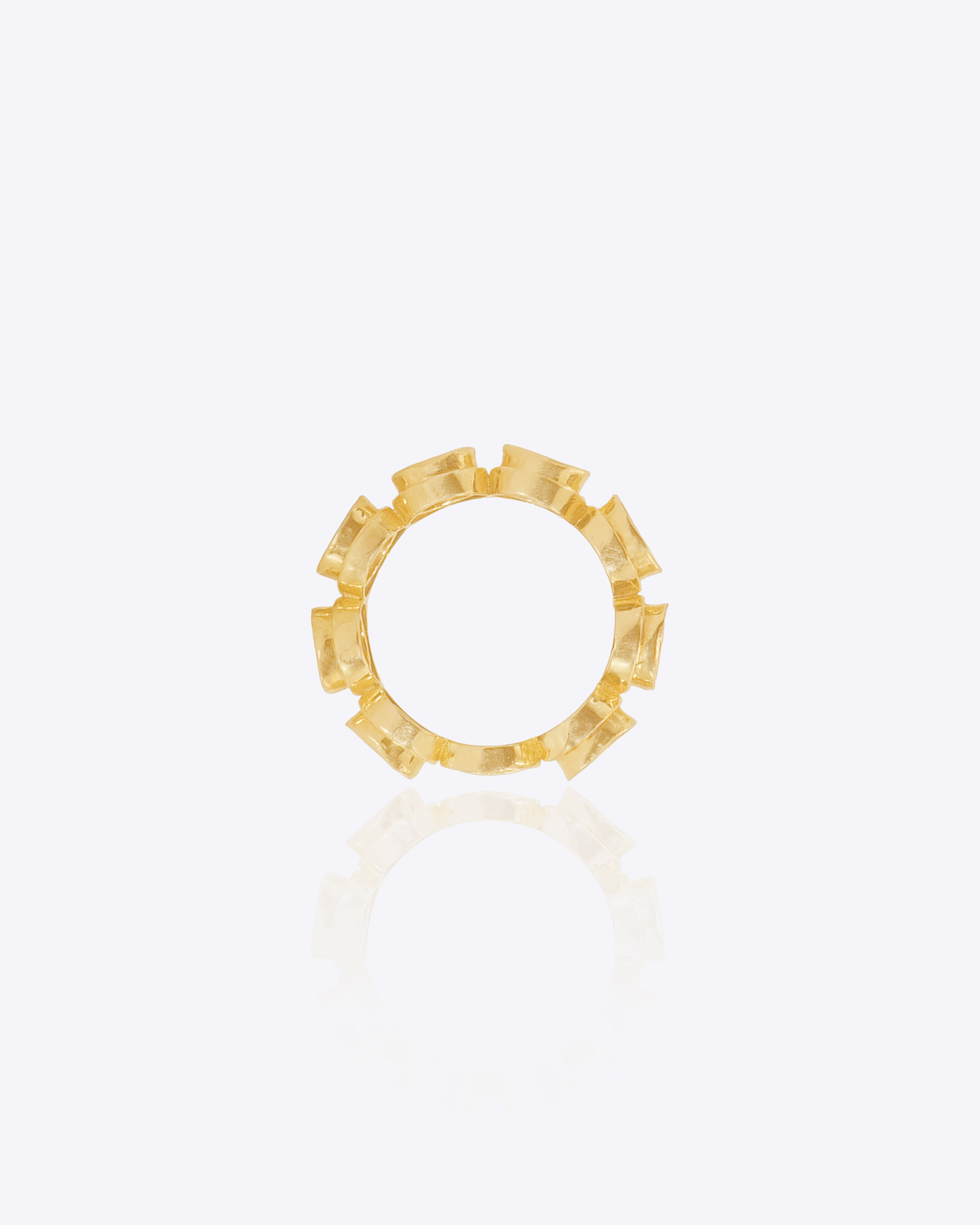 Stack it with slim bands or wear solo for a clean, luminous finish.