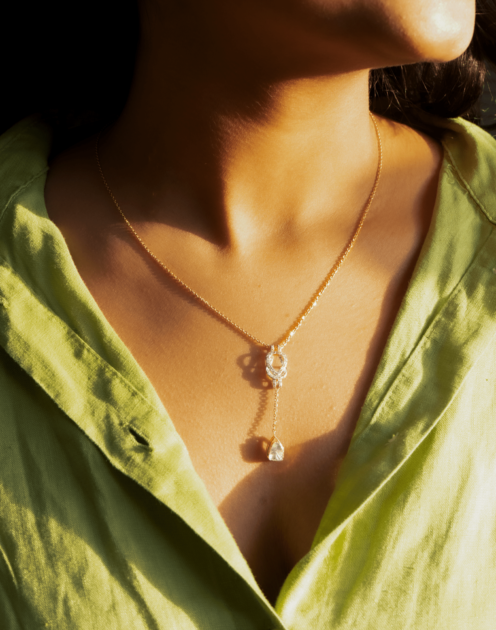 The Infinite Drop Necklace in 14KT gold brings a soft, refined glow to your everyday style. Its delicate pendant and graceful drop create a minimal silhouette that adds a subtle touch of elegance to any look.