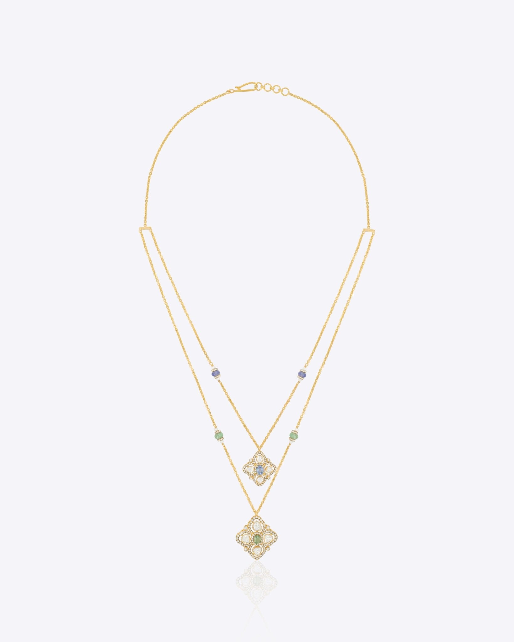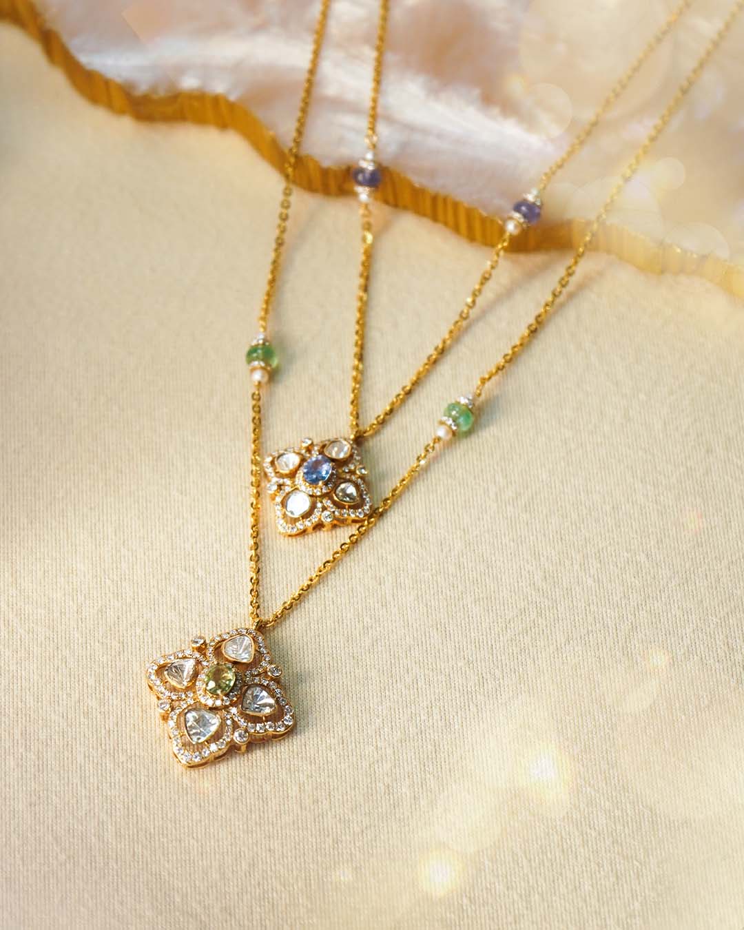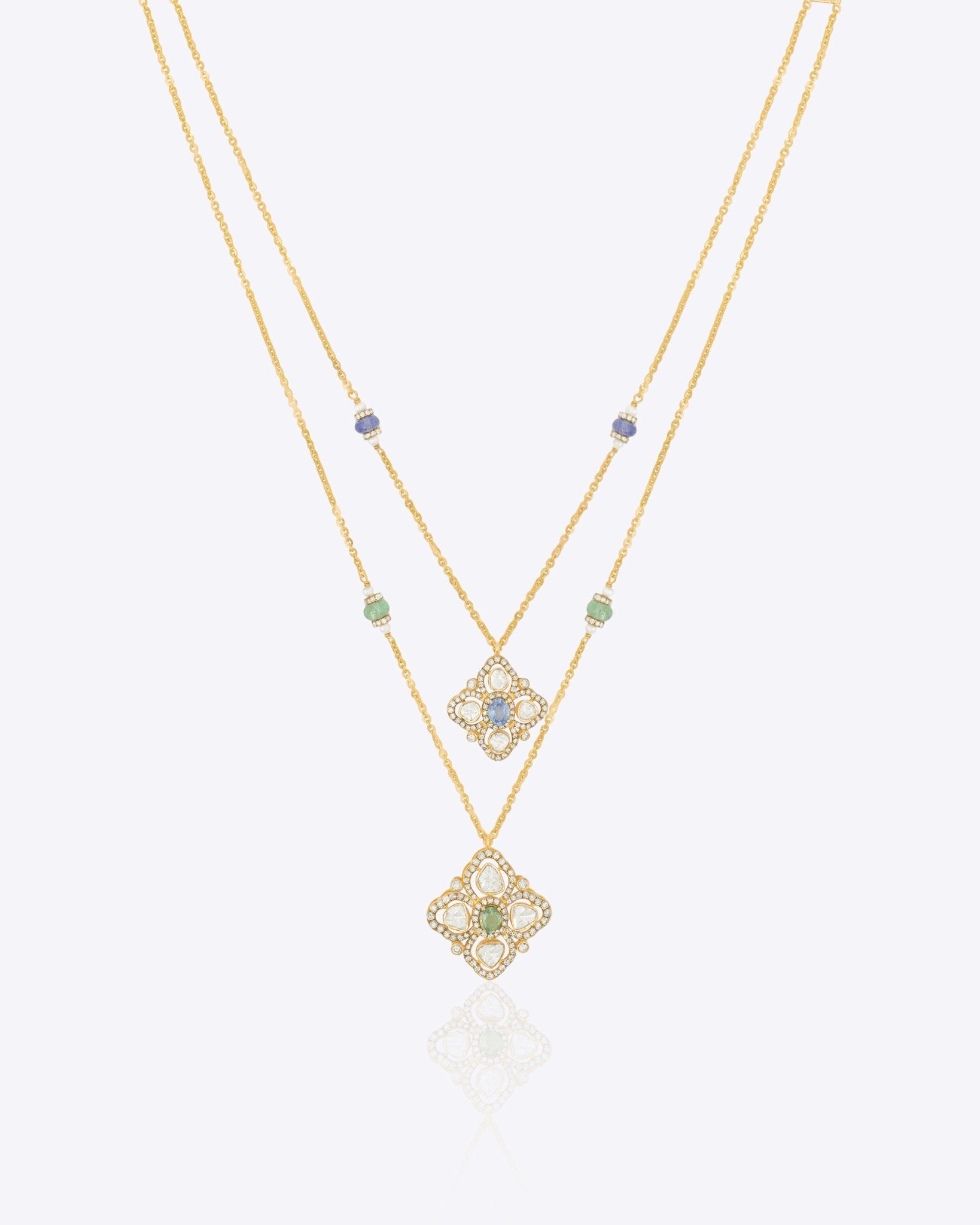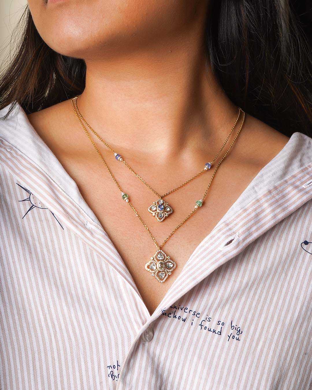 A stunning Polki diamond cross radiates fiery brilliance, blending classic luxury with bold, modern architecture, embodying strength, sophistication, and contemporary elegance in a striking necklace design.