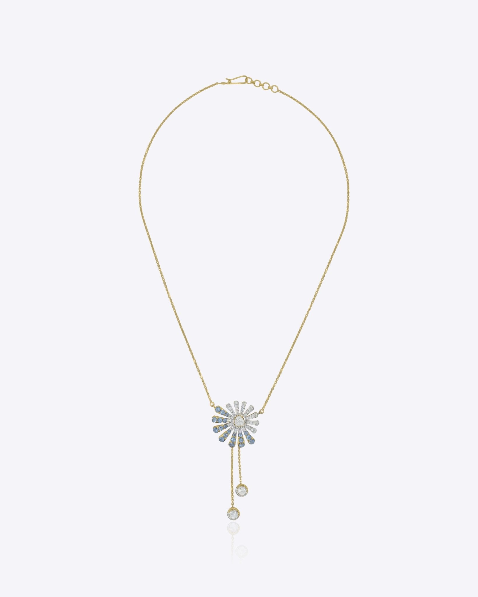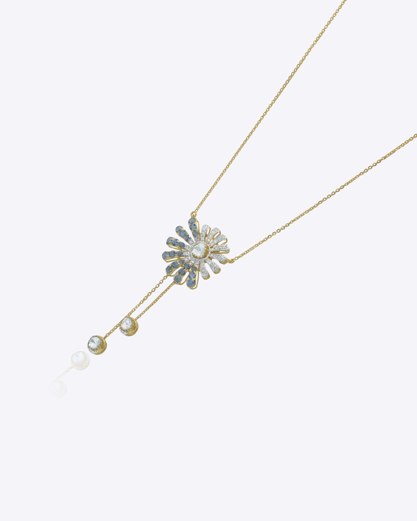 Crafted in 14K gold, the Solara Arc Necklace features Polki accents with radiant detailing, creating a luminous and elegant statement piece.